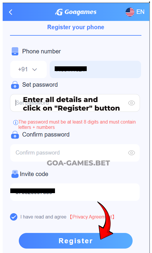 Complete Registration: After providing all the necessary information and agreeing to the terms, click on the “Register” button to complete the registration process. Congratulations, you’re now a registered member of Goa Games.